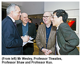 The opening ceremony held at and sponsored by the Hong Kong Maritime Museum on 9 December was attended by Professor Way Kuo, President of CityU; Professor Jeffrey Shaw, Dean of SCM and Co-Chair of the VSMM 2014 Committee; Professor Harold Thwaites, Director of the Centre for Creative Content and Digital Innovation, University of Malaya, and Co-Chair of the VSMM 2014 Committee; and Mr Richard Wesley, Director of Hong Kong Maritime Museum.