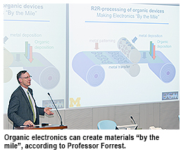“Organic electronics can make things ‘by the mile’, not by the inch,” he said.