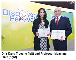 Professor Muammer Ozer of the Department of Management and Dr Y-Dang Troeung of the Department of English were selected for "Teaching with a Clear Vision" and "Rediscovering the Familiar through Creative Work", respectively.