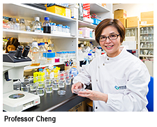 Professor Cheng is known for the successful translation of her work using the medaka fish larvae for drug screening and pollutant testing. Two CityU alumni who have applied her technology to food and cosmetics testing recently won the Grand Prix at the 43rd Geneva International Exhibition of Inventions.
