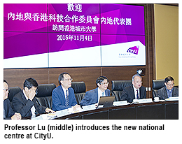 Professor Lu presented the Centre to the delegation. Also, Professor Paul Lam Kwan-sing, Chief-of-Staff and Director of the State Key Laboratory in Marine Pollution, and Professor Chan Chi-hou, Director of the State Key Laboratory of Millimeter Waves (CityU’s partner laboratory), reported on the development of the two laboratories.