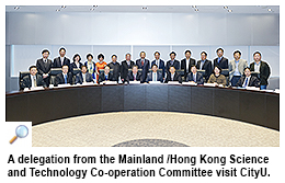 A delegation from the Mainland /Hong Kong Science and Technology Co-operation Committee visited CityU on 4 November. Members of the delegation include representatives from MOST, the Hong Kong and Macao Affairs Office of the State Council, the Liaison Office of the Central People's Government in the HKSAR, the National Natural Science Foundation of China, the China Association for Science and Technology, Shenzhen Science, Technology and Innovation Commission, and ITC.