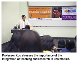 During the Q&A, Professor Kuo said a thorough understanding of concepts and knowledge was the key to education, adding that students should explore their real interests and capabilities in order to further develop themselves.