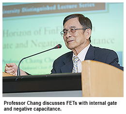 The development of the negative capacitance gate FET (field-effect transistor) has made Taiwan the world’s top semiconductor base, Professor Chang said in his talk on 3 May. His talk was titled “New Horizon of FinFETs with Internal Gate and Negative Capacitance”.