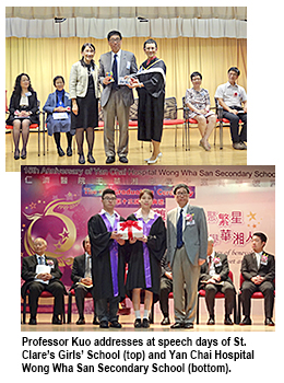 The spirit of research is essential to the advancing society, according to Professor Way Kuo, President of City University of Hong Kong (CityU).Professor Kuo was speaking at speech days of St. Clare’s Girls’ School and Yan Chai Hospital Wong Wha San Secondary School.