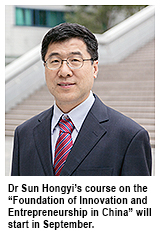 One course is slated to be delivered starting in September: “Foundation of Innovation and Entrepreneurship in China” by Dr Sun Hongyi, Associate Professor in the Department of Systems Engineering and Engineering Management.