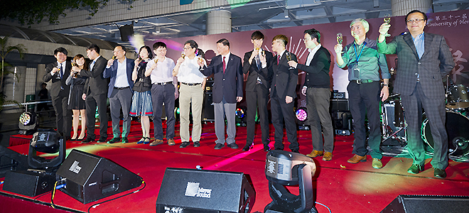 Guests included Mr Herman Hu Shao-ming, Chairman of CityU Council, Professor Way Kuo, CityU President, Mr Clovis Lau Koong-yep, Chairman of the Convocation, Professor Gary Feng Gang, Acting Provost, Dr Tim Wong Chi-tim, Acting Vice-President (Student Affairs) and Dr Ron Kwok Chi-wai, Dean of Students. They were joined by five members of the Banquet Organising Committee to officiate at a simple yet solemn toasting ceremony that kicked- off the banquet.