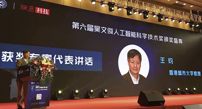 Professor Wang Jun, Chair Professor of Computational Intelligence in the Department of Computer Science at City University of Hong Kong (CityU), has received the 2016 Achievement Award at the Wu Wen Jun Artificial Intelligence Science and Technology Award Ceremony.