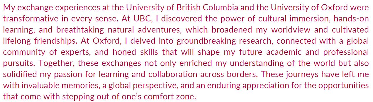 Home Current Students Undergraduate Activity Study Abroad Activities Student Exchange Programme Student Exchange Programme CLP navigation Study Abroad Activities Student Exchange Programme Study Tours Outbound Student Exchange Experience WIJAYA Sherin Leana University of British Columbia (UBC) and University of Oxford