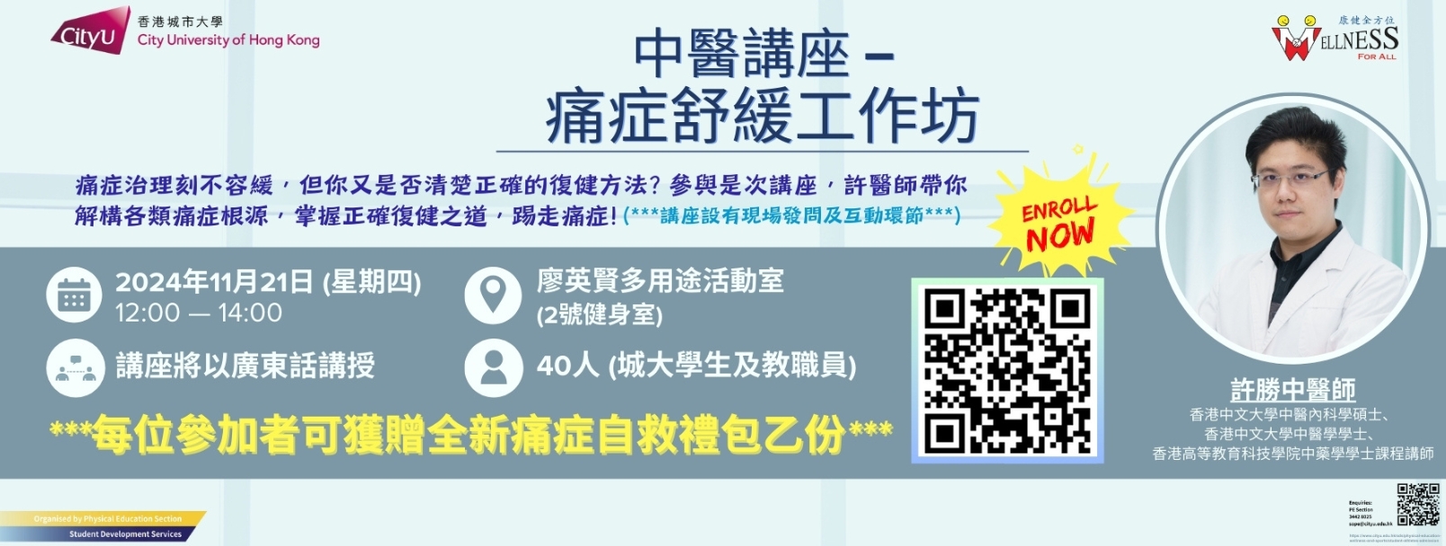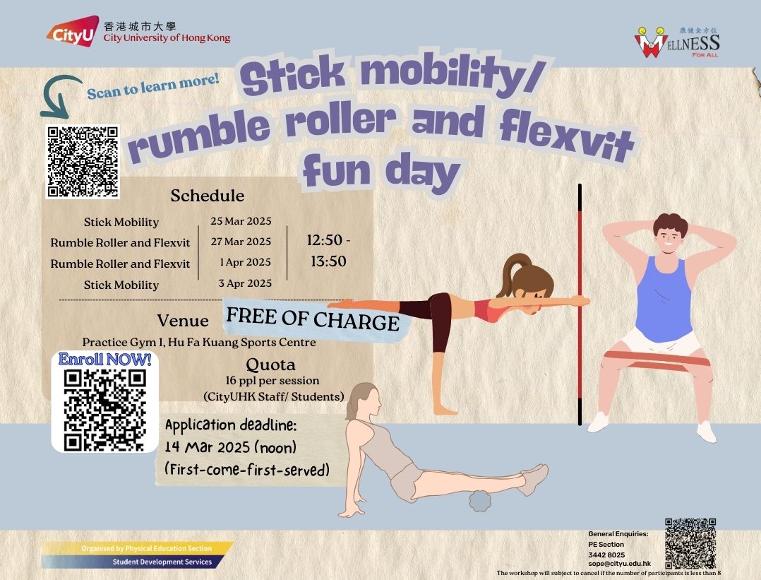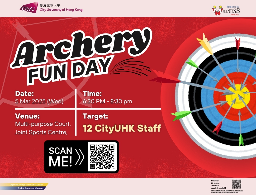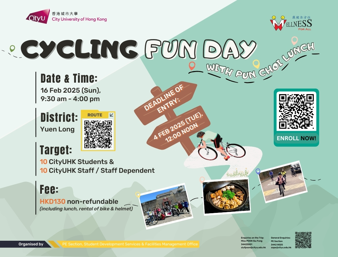 "Wellness For All" is an evidence-based, year-round campaign to promote active lifestyles, physical well-being, and enhanced health, fitness, and quality of life across the CityUHK community through innovative total wellness programming.