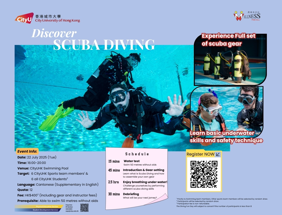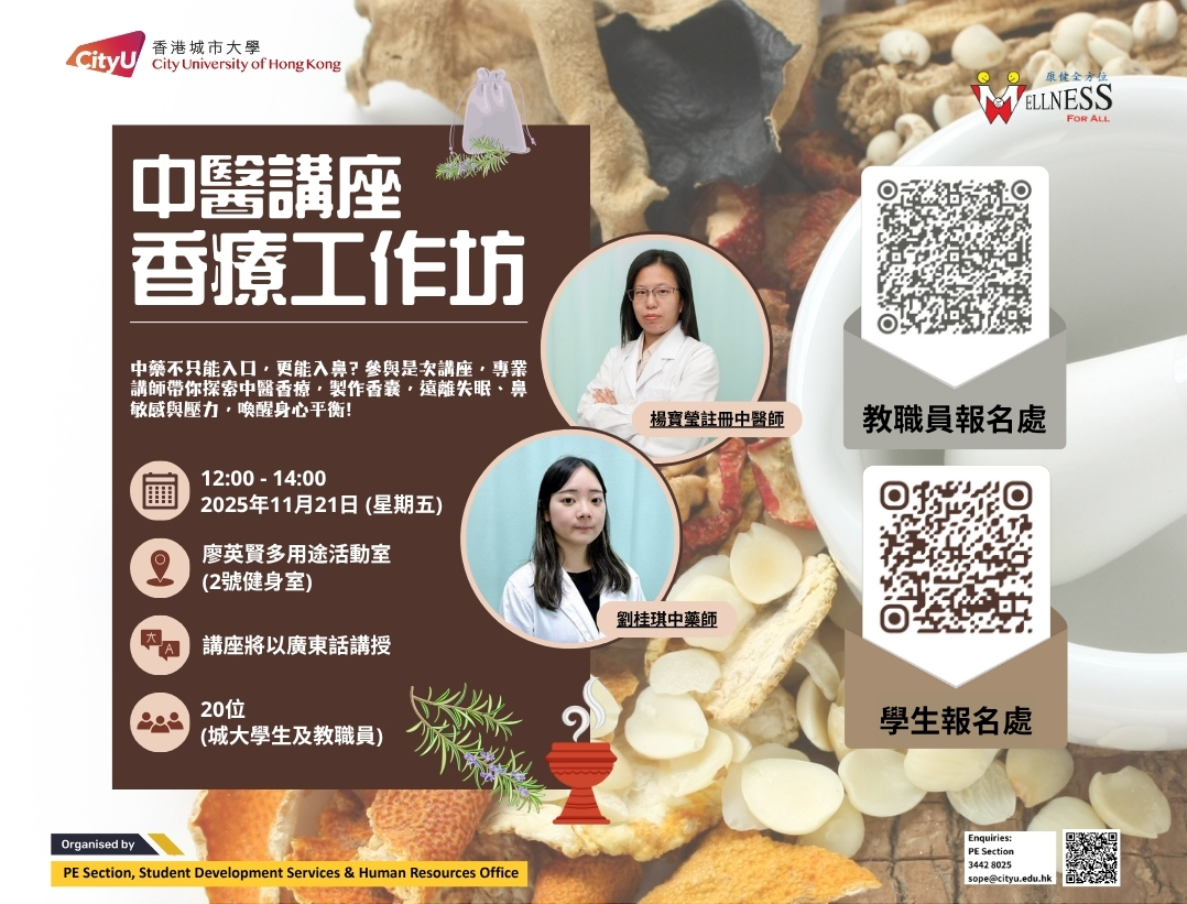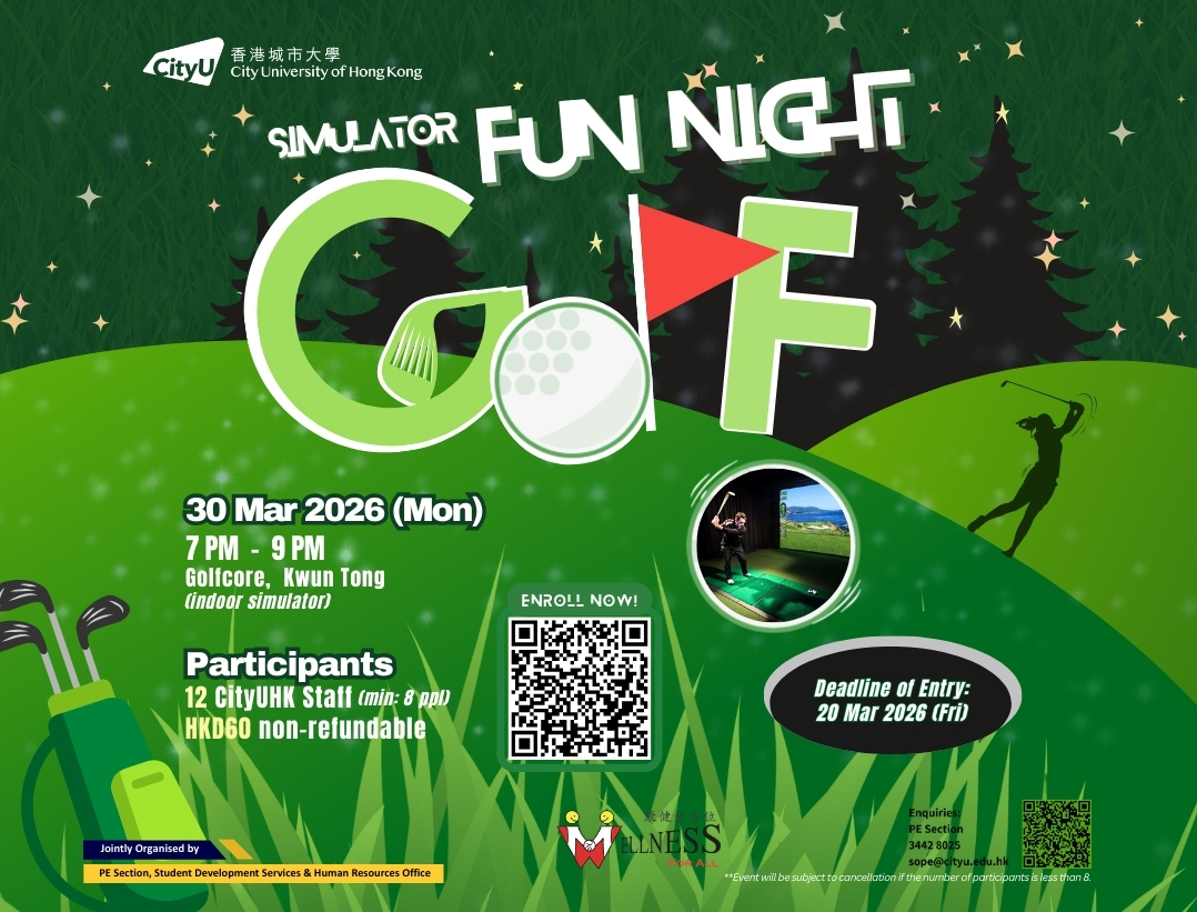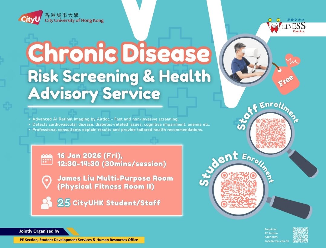 "Wellness For All" is an evidence-based, year-round campaign to promote active lifestyles, physical well-being, and enhanced health, fitness, and quality of life across the CityUHK community through innovative total wellness programming.