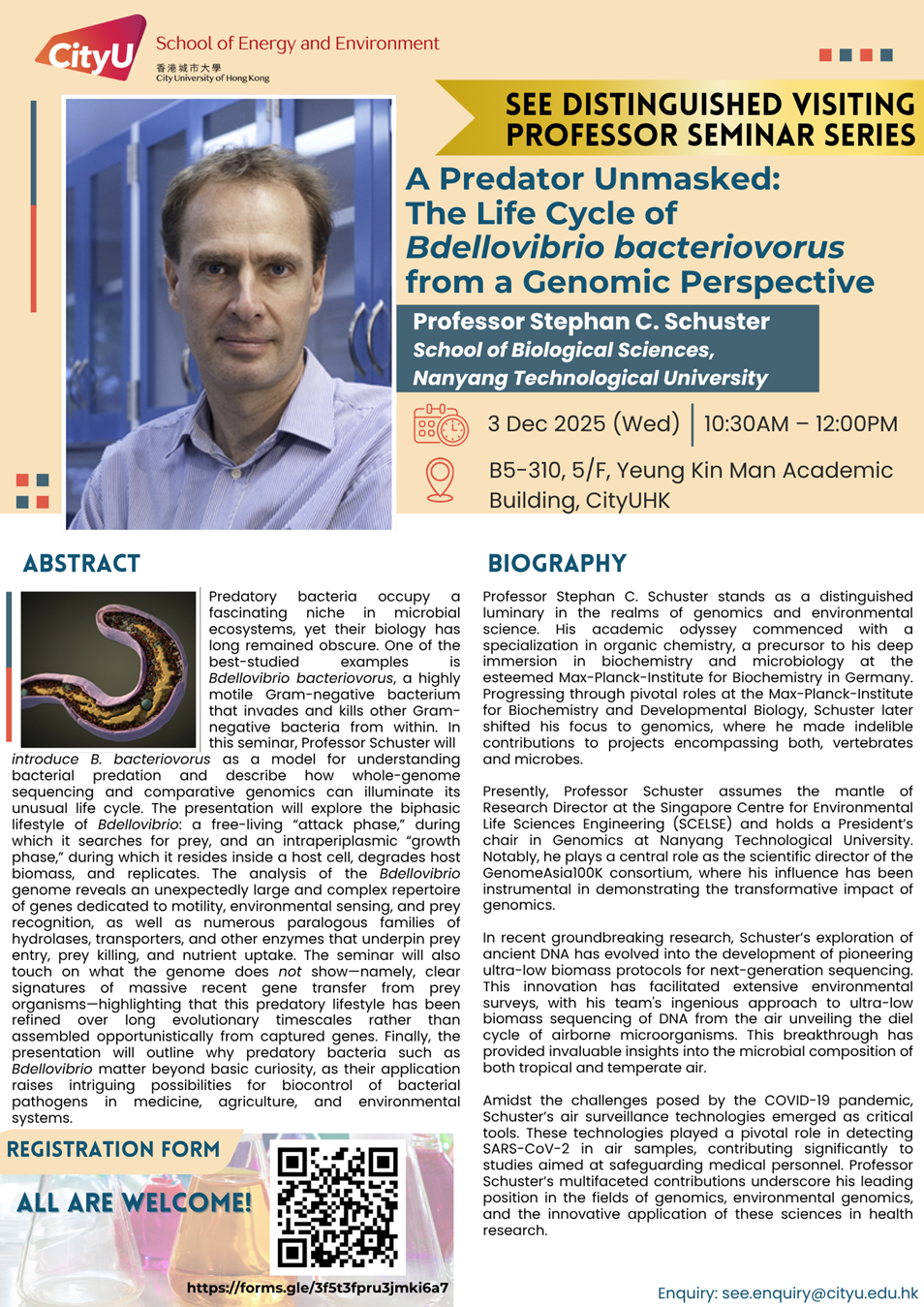 Professor Stephan C. Schuster, SEE Distinguished Visiting Professor, School of Biological Sciences, Nanyang Technological University