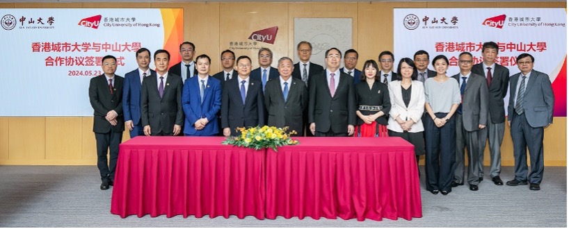 CityUHK and Sun Yat-sen University (SYSU) signed two cooperation agreements on 23 May 2024 to establish partnerships in areas such as digital medicine and law to foster talent nurturing and exchanges.