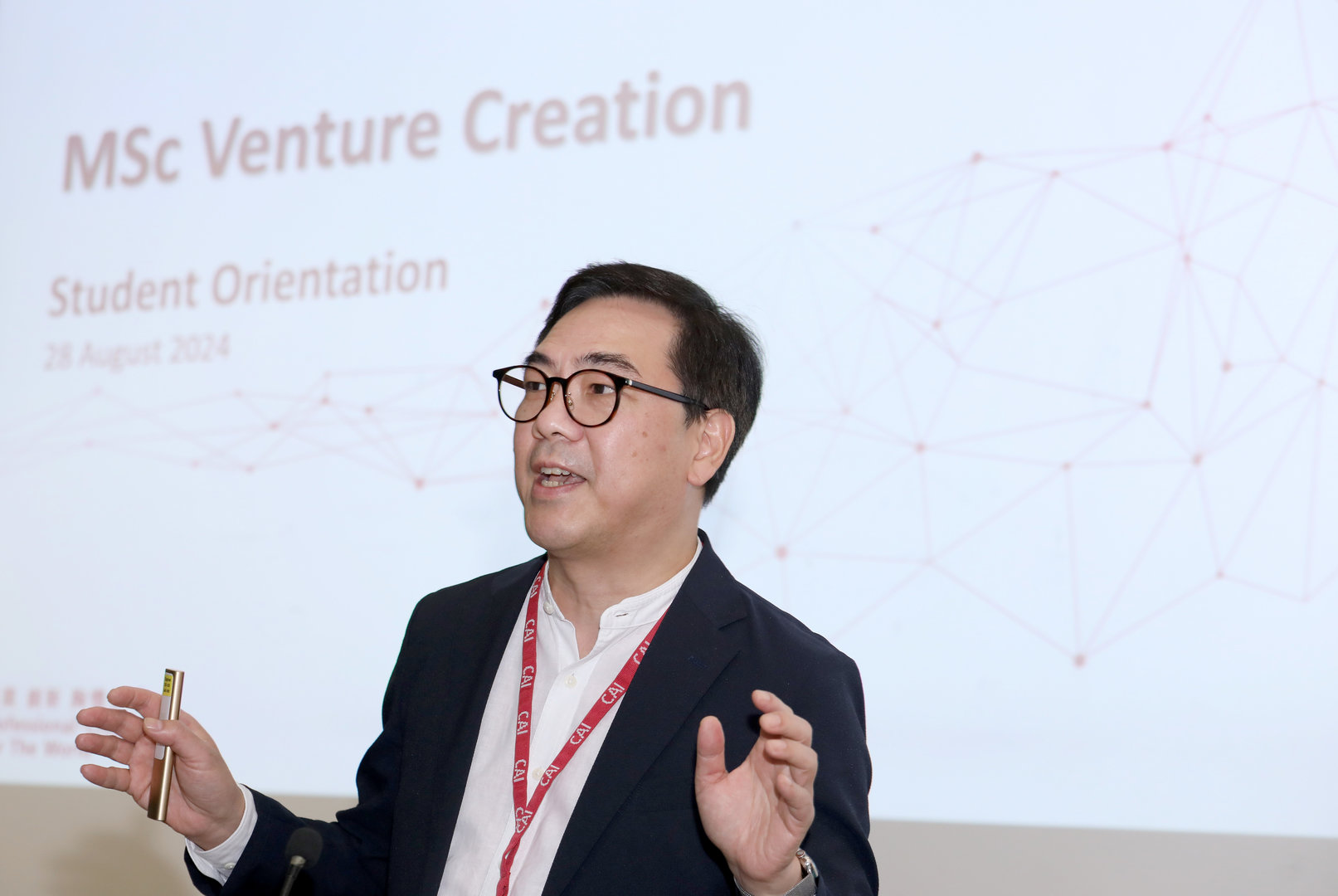 CityUHK Senior Vice-President (Innovation and Enterprise) Professor Michael Yang Mengsu spoke about the University’s vision to be a global leader in cultivating tech talent and deep-tech ventures. “With the vast ecosystem built through HK Tech 300, the CityUHK Academy of Innovation will continue to drive partnerships across government, industry, academia, research and investors. This collaboration will empower young people to turn their innovative ideas into practical solutions that address global issues and drive social and economic development.” He encouraged new students to see the programme as the first step on their entrepreneurial journey.