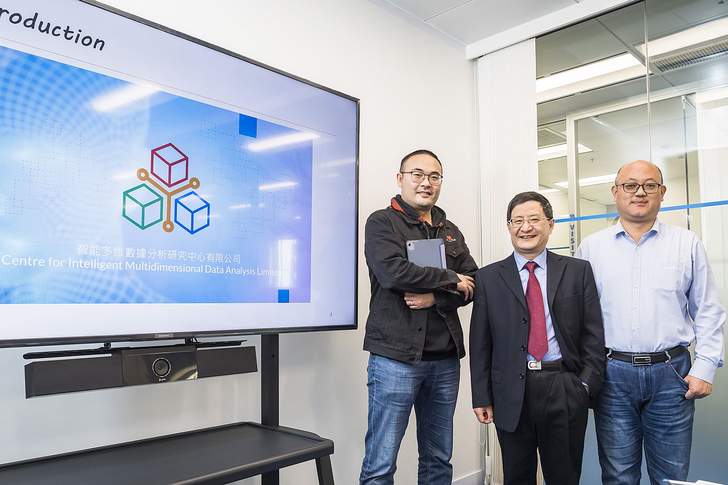 (左起)香港心脑血管健康工程研究中心主任张元亭教授、智能多维数据分析研究中心总监严洪教授、人工智能金融科技实验室主任严厚民教授。