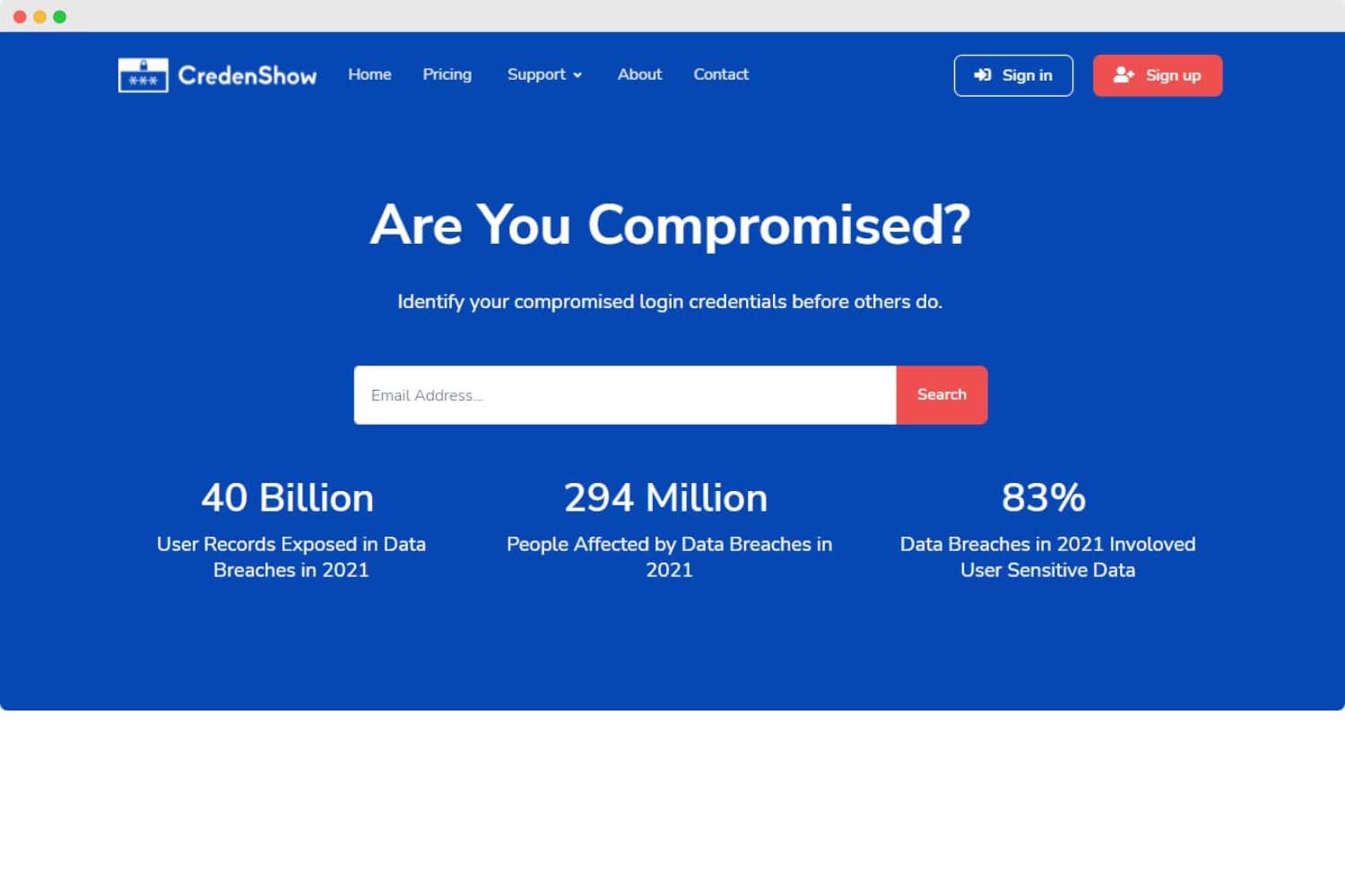 CredenShow is a Software as a Service (SaaS) platform that provides a low-cost solution for the general public and companies of all sizes to search across data breaches instantly to identify compromised credentials and protect themselves from account takeover attacks.