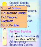 By using this option, you can reserve the bookings on the lecture theatres, classrooms, CSC teaching studios and sports facilities on-line in advance. -