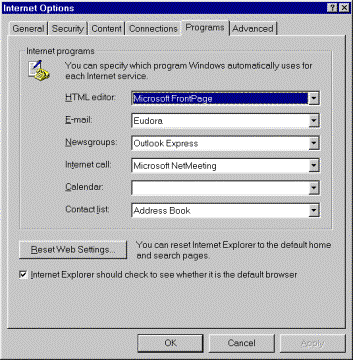 For PCs connected to the staff LAN, your existing default browser will still launch the Staff Intranet. If you would like to know how you can change the default browser to IE, or to find out the advantages and differences between IE and Netscape, the information below is provided for your reference. For the sake of convenience, the same information is also placed on the CSC’s Web site http://www.cityu.edu.hk/csc/ — from the “Facilities” submenu, opt for “Internet/Intranet Access” and then select “Using MS Internet Explorer (IE)”.