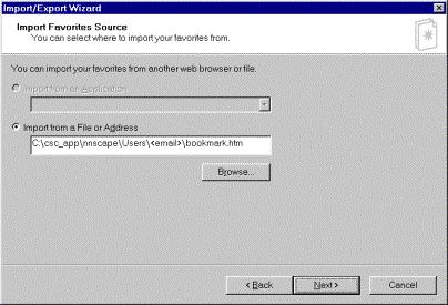Click on "Next" button and then type in or browse the location of the bookmark file. Substitute the