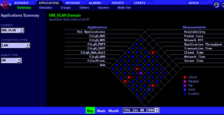With the installation of small agent software into client workstations, the application response time, network delay and throughput of most IP based application/services can be measured and recorded.