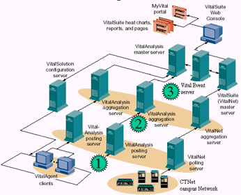 The NMS is based on layered architecture. The processing of the network and application performance data are broken down into three phases: