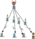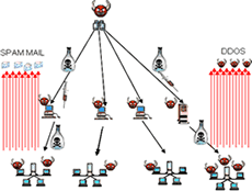 | Step 4. The hacker can issue commands to hosts with virus/trojan installed to perform further attacks. e.g. Sending of SPAM MAIL or DDOS attacks | IPS Protection: Our IPS stops the Port Scanning activities at the First Step. Thus, it prevents further infection/attack. | |