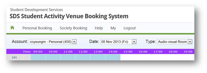 “The CSC Teaching Studio Booking System” had been evolved to “SDS Student Activity Venue Booking System” in November 2009. The system was employed for individual students to reserve music rooms, band room and dark rooms. A total of 6 SDS rooms were managed under this system. The utilization of music rooms and band room is around 90% during term time. And this system is an important tool for the venue management of SDS.”