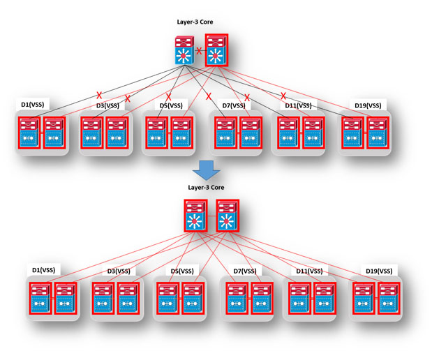 Replacement of the next remaining Layer-3 Core switch was initiated after the installation of all VSS Distribution switches were completed and tested.