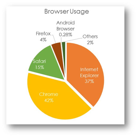 It was obvious that Chrome and IE are the two major browsers used and there are slightly more Chrome users than IE users. Safari has many supporters, and we can also see access from browsers of mobile devices are becoming popular too.