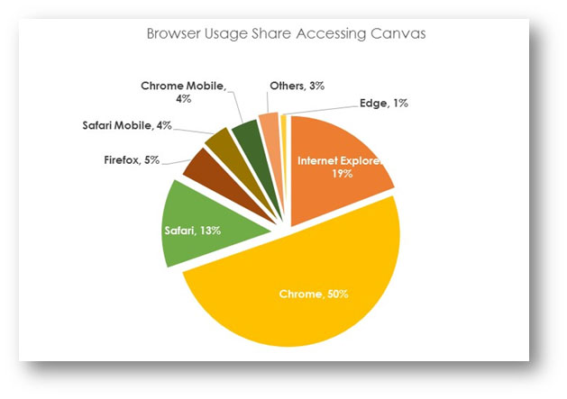 Usage statistics collected from the e-learning environment, Canvas, confirms that students tend to use Chrome more often.