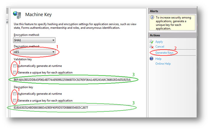 (For security reasons, please generate different machine key pairs for different web applications.)