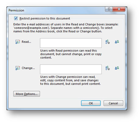 - Check Restrict permission to this document and click the OK button.