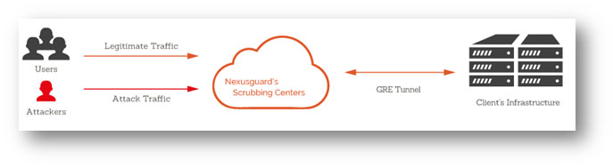 “Origin Protection” is a solution that aims to protect against volumetric DoS or DDoS attacks by making use of the BGP routing protocol to redirect all CityU’s Incoming Internet network, including both legitimate traffic and attack traffic, to the Nexusguard’s worldwide scrubbing centres.