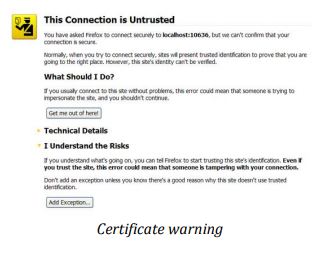 In case of system or browser warning about certificate validity, user should not continue his request.