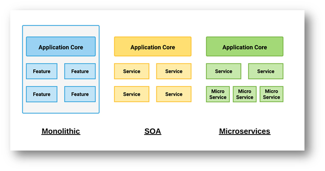 To remedy the situation, the Service-Oriented Architecture (SOA) was brought into play. In a SOA, the system is divided based on domains, each of which exposes web services for the system core to consume. Hence, each web service could be tested and deployed independently, reducing spaghetti codes, enhancing the overall agility of the development and shortening the time to market.
