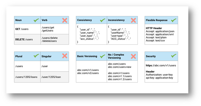 APIs should be well architectured in the early stage as not only will it affect their ease of use by API consumers, it also relates to future scalability and extensibility. Some general fashions one may follow are listed below, and there are other valuable resources available on the web [4] [5]. We may also reference other big brands when designing the APIs, like Google [6], Dropbox [7] or Instructure Canvas [8].