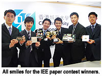 Once again, CityU’s young electronic engineers have proven their talent in technological innovation. Six students from the Department of Electronic Engineering (EE) have won championships and prizes in this year’s IEE (The Institution of Electrical Engineers) Hong Kong Younger Members Section Paper Contest, in both the undergraduate and postgraduate sections.