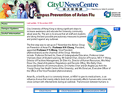 香港城市大學於11月7日正式成立禽流感防預小組,以加強預防禽流感的宣傳及統籌校園各部門的防預工作,呼籲教職員及學生正確認識流感的徵狀,時刻做好防範工作。