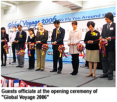 CityU recruited more than 250 exchange students from 23 countries in 2005 - 2006, and “Global Voyage 2006”, under the theme We fly you around the world, is one of several cultural activities organized by CityU to facilitate exchanges between local and non-local students. The exhibition hall, decorated like the departures hall of an international airport, contains eight booths that will showcase the music, language, traditions and history of 15 countries. Food tasting is also on the menu: Tom Yum, a kind of Thai soup; green curry; royal food served in Austria; Korean rice cakes; and Malaysian snacks.