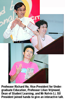 Professor Richard Ho Yan-ki, Vice-President for Undergraduate Education, Professor Lilian Vrijmoed Lee-ping, Dean of Student Learning, and Mr Kelvin Li Chun-fung, President of the Student Union, were at the ceremony as well. They chaired a special interactive talk. Professor invited the new students to participate in a number of games, aimed at getting students to set goals for themselves.