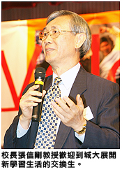 校長張信剛教授到場為學生打氣。他說:「交流活動是促進城大校園國際化的重要元素。在全球一體化的趨勢下,參與交流活動的同學,要好好把握這個機會,多認識不同地域的文化,思考未來發展的方向。」