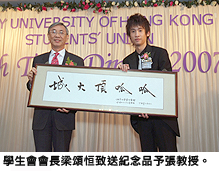學生會主席梁頌恒代表全體城大學生,把一幅以「城大頂呱呱」為主題的字畫贈予張教授,並道出同學們的心聲:「張校長,我們以你為榮!」,牽起了整晚的高潮。