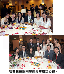各出席者均盛裝赴會,正好配合晚宴的主題──“Once in a lifetime, the most unforgettable”(「一生一次,讓你難忘的一夜」)。晚宴開始前,大會敬備酒會,讓同學與來自各行各業的嘉賓交流,向他們借鏡學習。同學們更把握這難得的機會,爭相拉着張教授合照,場面溫馨感人。