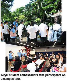 Ms Alice Wong Yuet-yau, Exchange Programmes Manager of CityU’s External Liaison and Cooperation Office, introduced CityU’s courses and admission information using an entertaining short film, and Professor (Chair) Eden Yu Siu-hung, Head of the CityU’s Department of Economics and Finance, talked about the characteristics of his Department, arousing strong interest among participants, some of whom later enquired about applying to CityU. Meanwhile, four CityU student ambassadors took participants on a tour of the campus, including a stop at the School of Creative Media to see short films shot by CityU students. Participants exchanged ideas with the ambassadors, expressed their particular interest in Hong Kong’s unique cuisines and asked after the lives of mainland students living in Hong Kong. Two CityU student ambassadors, who came from mainland China, talked about their exciting life at CityU and the friendly atmosphere on campus.