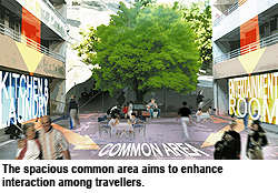 伍會駿說:「香港早期的公屋居民鄰里關係很密切,家家戶戶都會打開大門,在走廊煮食。我們希望在設計中把這種鄰里情誼延續下去。」他們建議把廚房、洗衣房、娛樂室等設施設置在地下,讓旅客共用,加強彼此交流及溝通。