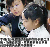 來自山西、現正修讀基礎年的內地生李桐每星期都會抽時間參與義工活動。她每逢周六到社福機構探訪殘障兒童,提供免費功課輔導。她說:「初到貴境,很希望了解香港人的生活習慣,我認為做義工是很好的選擇,令我可以更快融入社會。我從那些小朋友身上學懂人與人之間相處及溝通需要耐性。」