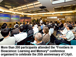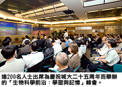 城大為慶祝創校25周年,將連續舉行四場名為「論科學、創未來:世界級學術峰會」的系列峰會,由城大副校長(研究及科技)及研究生院院長王世全教授帶領籌劃,邀請不同領域尖端科學的優秀學者參與,首場為「生物科學前沿:學習與記憶」,由城大生物及化學系楊夢甦教授任召集人。