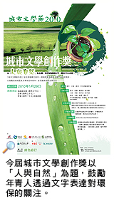 城市文學創作獎旨在吸引及鼓勵港澳年青人投入創意寫作,今年比賽的主題是「人與自然」,現已公開徵稿,至本月底截止。