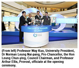 In his address, Professor Way Kuo, University President, said, “We have been a university of the city of Hong Kong, in the city of Hong Kong and for the city of Hong Kong since our foundation.” He added that the six CityU colleges and schools have left their mark on the exhibition and that CityU will continue to educate young people to give them every opportunity for innovation and discovery, the twin curricular foci of CityU’s new 4-year degree structure.