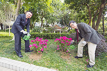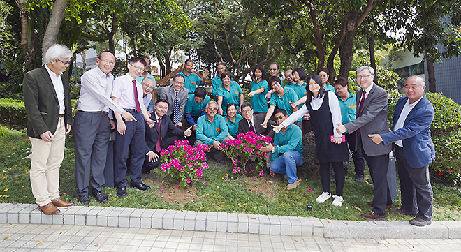 Professor Kuo and Mr Lee planted the Brazil bougainvillea near University Circle during the ceremony. CityU gardeners plan to plant more Brazil bougainvillea on campus, making the flower highly visible and adding more colour and life to CityU.